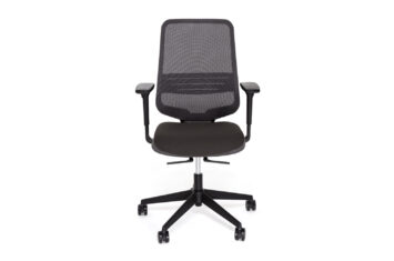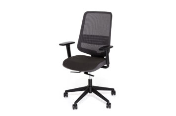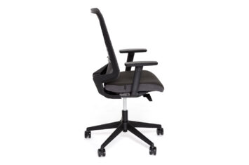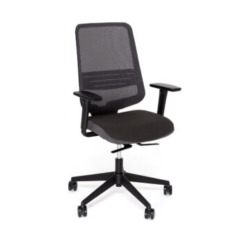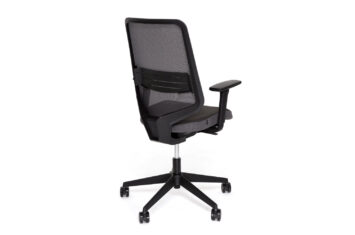 В складском ассортименте кресло Dot Pro представлено с черной пластиковой базой, высокой спинкой в черной сетке, 1D подлокотниками, регулируемыми по высоте.