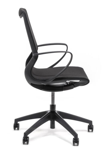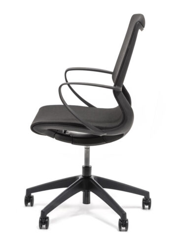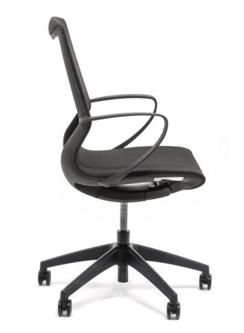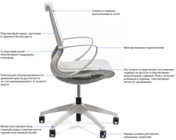 Сиденье и спинка в сетчатой ткани с 3d-плетением, эластичность которой вкупе с S-образным силуэтом пластикового каркаса обеспечивает комфортную поддержку поясничного отдела. Распределение нагрузки сбалансировано благодаря автоматической настройке жесткости по весу. Из этих характеристик складывается привлекательная модель, которая может стать отличным решением для зоны работы сотрудников, переговорных и даже для кабинета руководителя.