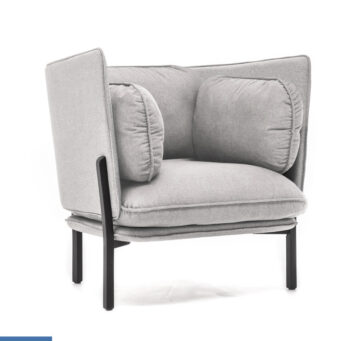Коллекция Bellagio представлена двухместным диваном и креслом с тканевой обивкой в комбинации серого и синего цвета. Надежное буковое основание поддерживают металлические опоры черного цвета. Обивка — жаккардовая ткань двух цветов, состав — 100% полиэстер, мягкая на ощупь и износостойкая (более 80 000 циклов на тесте Мартиндейла). Съемные подушки отделаны крупным декоративным швом.