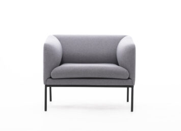 Коллекция Liro представлена двухместным диваном и креслом, выполненными в войлоке или коже серого цвета в сочетании с черными стальными опорами.
