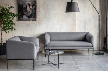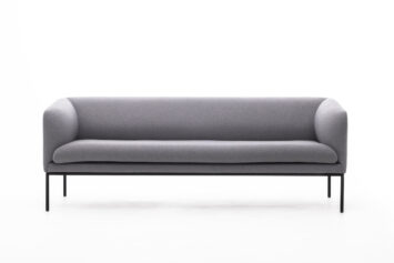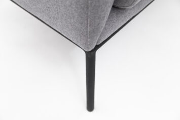 Коллекция Liro представлена двухместным диваном и креслом, выполненными в войлоке или коже серого цвета в сочетании с черными стальными опорами.