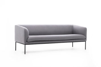 Коллекция Liro представлена двухместным диваном и креслом, выполненными в войлоке или коже серого цвета в сочетании с черными стальными опорами.