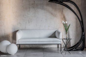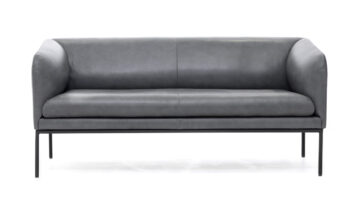 Коллекция Liro представлена двухместным диваном и креслом, выполненными в войлоке или коже серого цвета в сочетании с черными стальными опорами.
