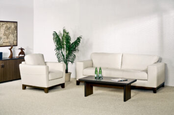 Модель Palladio в складском ассортименте представлена креслом и трехместным диваном, выполненными в бежевой коже в сочетании с опорами в цвете орех. Широкий выбор цветов ткани и кожи на заказ так же мебель может быть снабжена встроенными розеточными модулями (цену и сроки поставки уточняйте у менеджера).