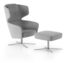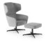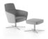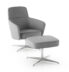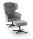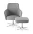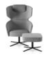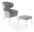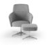 Мягкая мебель Vento представлена двухместным диваном с высокой спинкой, креслом и пуфом в ткани серого цвета.