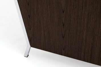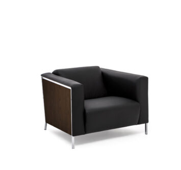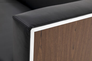 Коллекция компактных диванов и кресел Vispo Wood, в которой черная кожа сочетается с хромированным металлом и шпонированными вставками в цветах кабинета Exe — идеальный вариант для изысканного делового интерьера. Вместо традиционной для мягкой мебели кожаной обивки боковые стороны диванов и кресел Vispo Wood обиты шпонированными панелями — выглядит оригинально и необычно.
