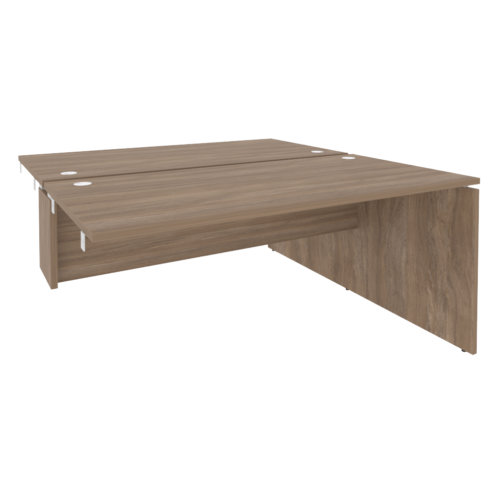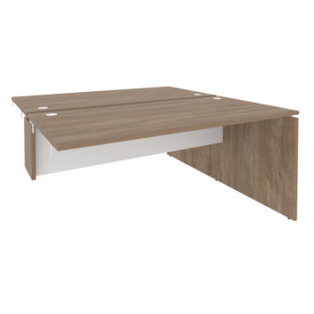 В серии есть письменные и переговорные столы с цельной столешницей, а также модульные конструкции: