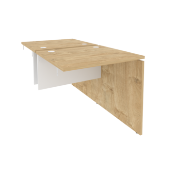 В серии есть письменные и переговорные столы с цельной столешницей, а также модульные конструкции: