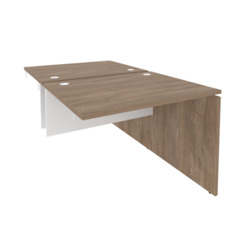 В серии есть письменные и переговорные столы с цельной столешницей, а также модульные конструкции: