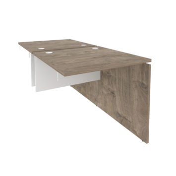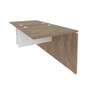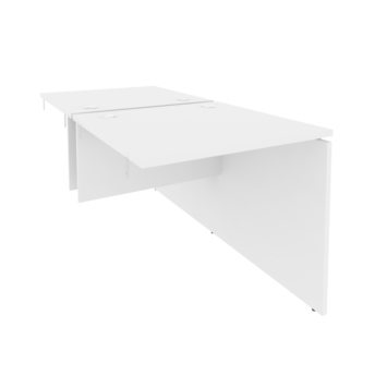 В серии есть письменные и переговорные столы с цельной столешницей, а также модульные конструкции:
