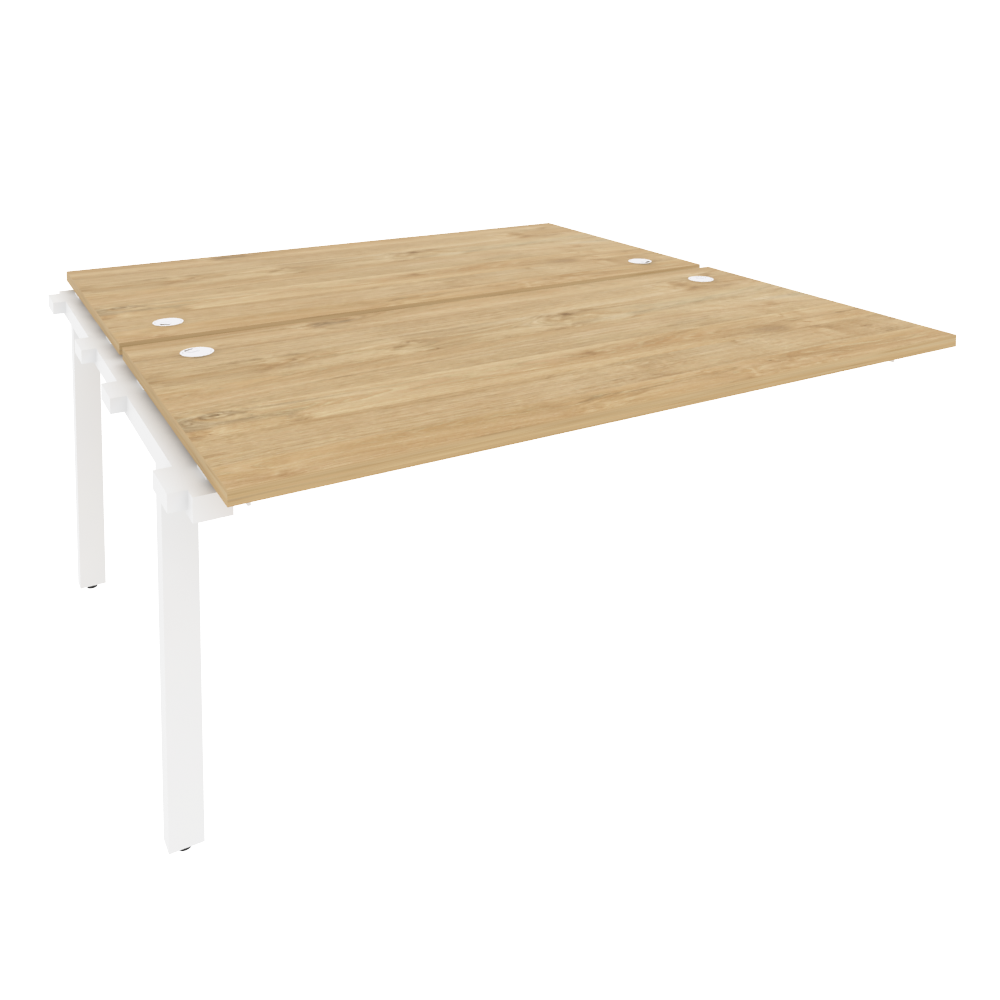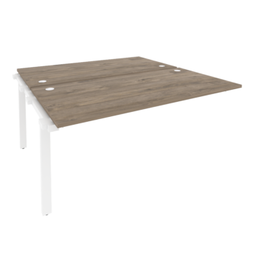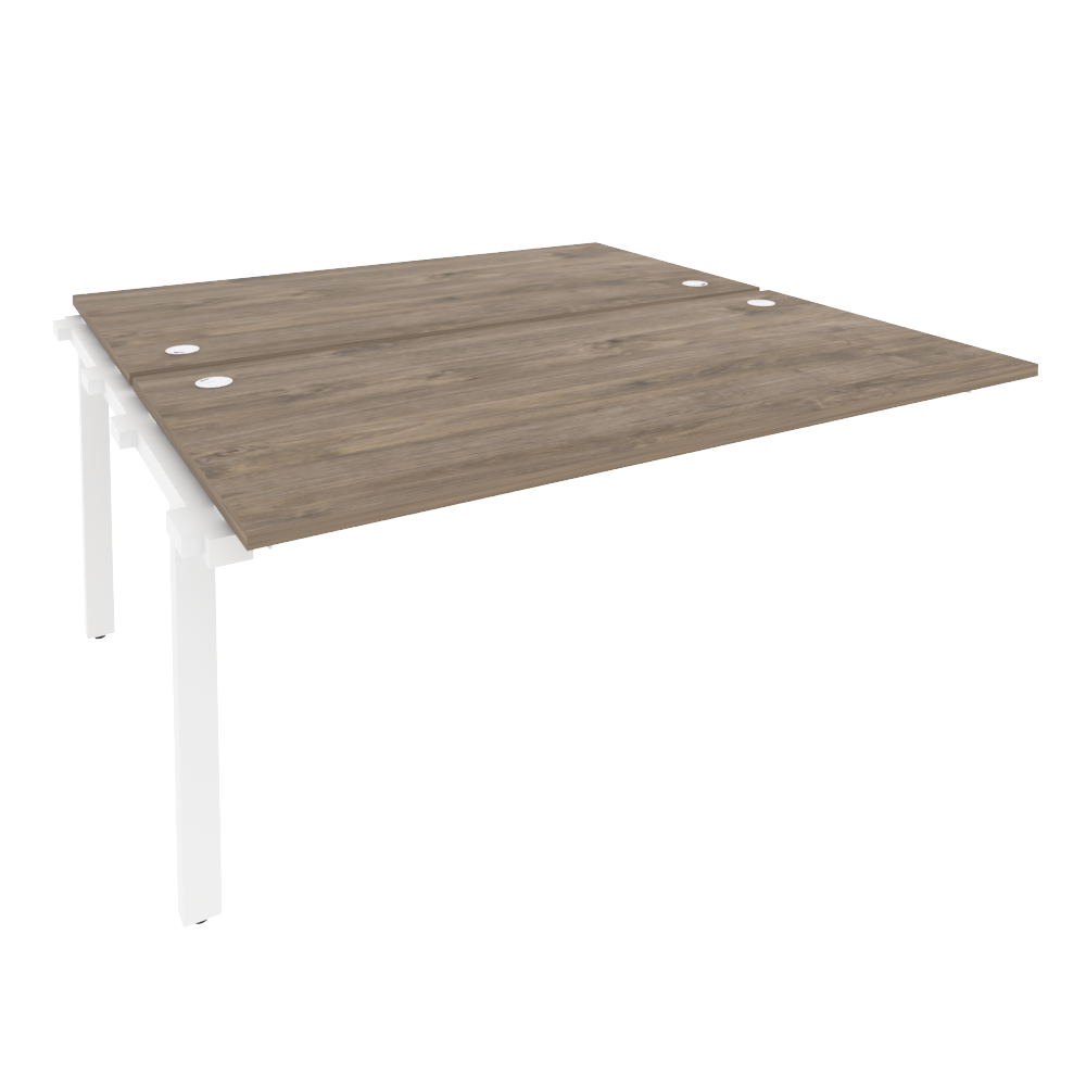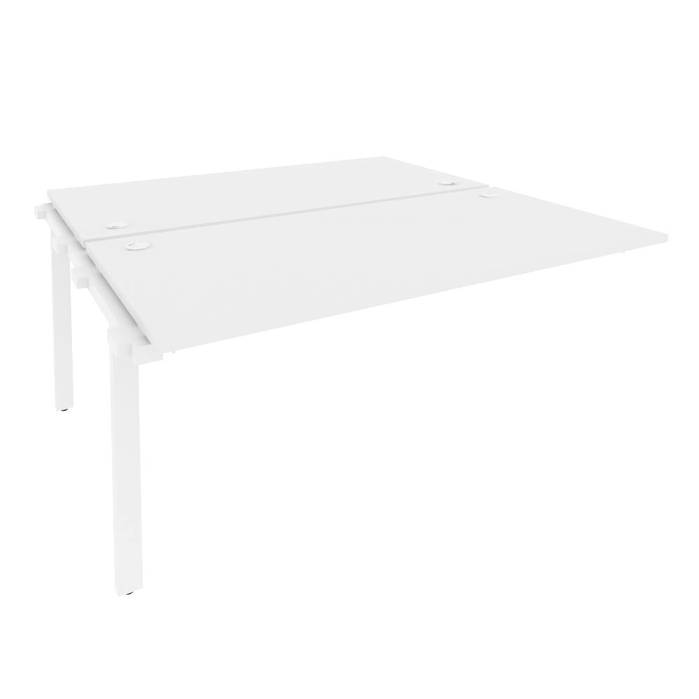 В серии есть письменные и переговорные столы с цельной столешницей, а также модульные конструкции: