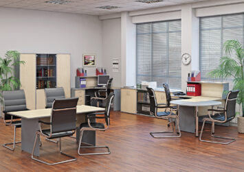 Комплект офисной мебели Riva позволит создать в офисе комфортабельную и приятную обстановку даже без большого бюджета. Представляя экономкласс, эта серия предлагает оптимальное соотношение доступной стоимости, многофункциональности, современной эргономики и достойного качества. Она получила лаконичный классический дизайн и интересные цветовые решения. Надежность и долговечность офисной мебели обеспечивается влаго- и износостойкой ЛДСП, прочными кромками из ПВХ, а также тонированными стеклами и импортной фурнитурой. Высокий уровень эргономики достигается за счет отличной сочетаемости всех предметов.